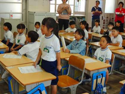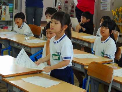 みんなの前で話すのが恥ずかしい子もいたようですが、先生から「〇〇さん、ステキなこと、書いてなかったっけ?教えてくれない」と、ハキハキと発表することができたそうです。