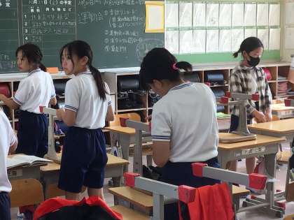 5年2組さんでは、明日の運動会に向けての準備を進めていました。
