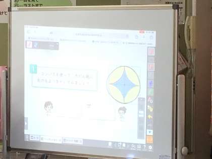 3年2組さんでは算数の授業でコンパスを使って模様を描くことに挑戦していました。