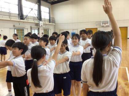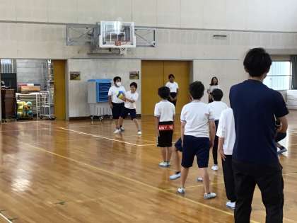 5年生は合同体育で長縄をやったり、ドッジボールをしたりしていました。