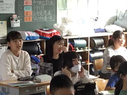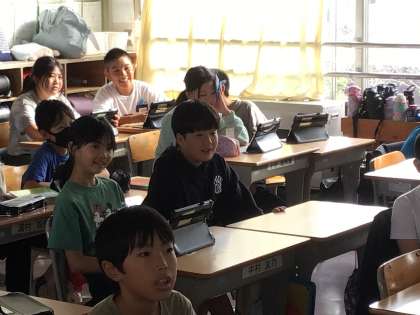 5年1組さんでは、午前中に見た「うりんこ」のみなさんの動画をみんなで見ていました。