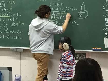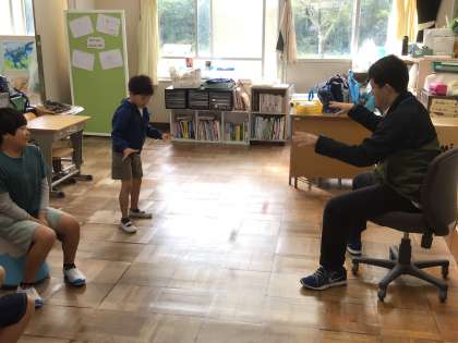1時間目、1年生がプール、2年生がおもちゃまつりに向けての準備をしている関係で、学級を少し解体して授業を行っていました。