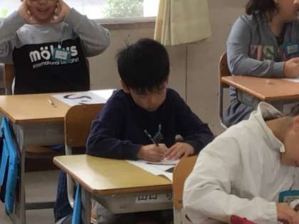 先生のお話を聞いて、お手本にポイントを書き込む2組のみなさんでした。