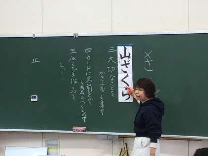 3年2組さんでは中島先生が書初めのポイントを説明していました。