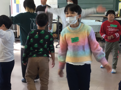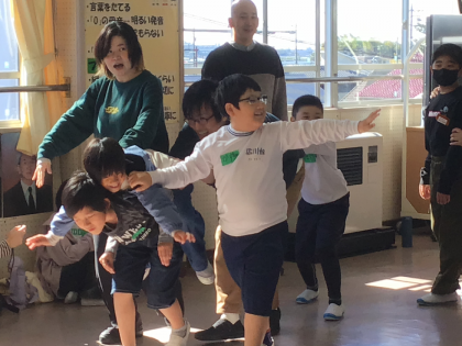 講師の太田さん、古場さんたちと一緒に「なりきりゲーム」などにチャレンジしています。