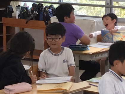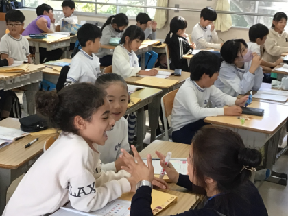 3年2組さんでは「英語で隣の席の子のイニシャルを聞く」という勉強をしていました。