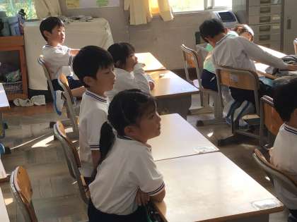 1年生のみなさんが、5時間目に生活科の授業で来週赴く「トヨタの森」について勉強していました。