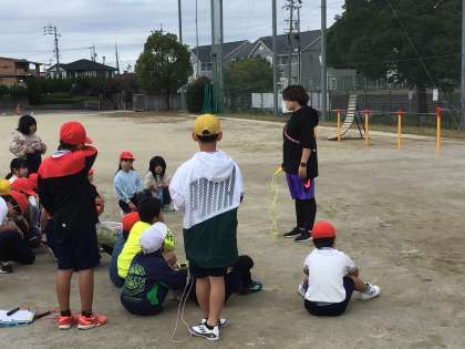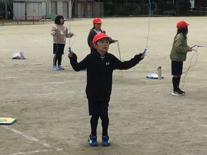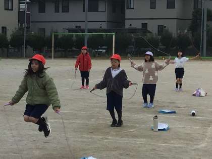 3年1組さんが運動場で縄跳びの練習をしていました。