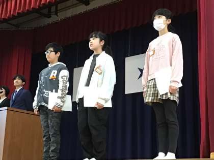 壇上にあがる前から自分の胸に手をあてて、緊張している様子が感じ取れる子もいました。全校の目線が、話している子に向きますので、さぞかしドキドキしたのではないかと思います。大役、お疲れさまでした。