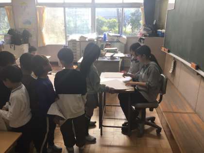 1年1組さん、2組さんでは月例テストの返却が行われていました。