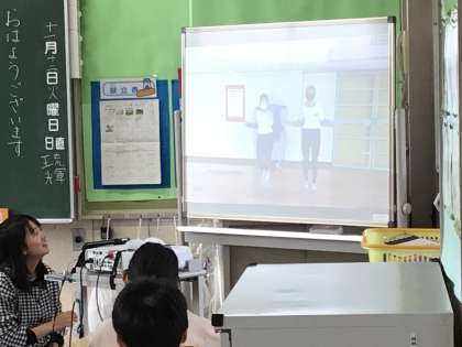 4年1組さん、教室で縄跳びの動画を見ていました。