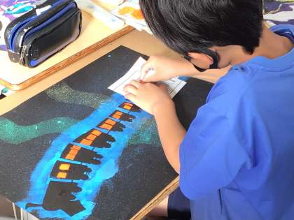 5年1組さんでは、読書感想画を作成していました。