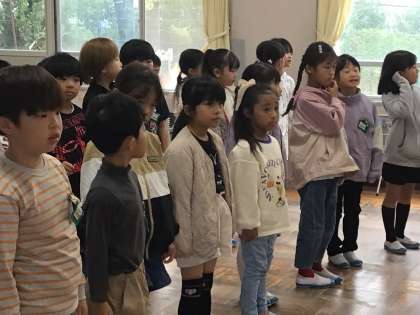 「楽しい読み聞かせ、ありがとうございます」1年1組さん、全員であいさつする前に一言、代表の子が添えていました。