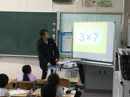 九九の問題を学習用タブレットを使って、練習していました。