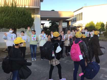7時19分、先生たちや保護者の方に見送られ、奈良県へ向けて出発しました.