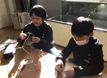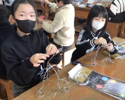 5年2組さんが図工の授業で「美しく立つはり金」を作成していました。