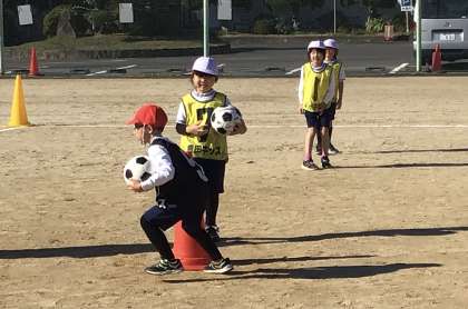 上の写真はじゃんけんをして負けた子が勝った子の周りを走るトレーニングです。