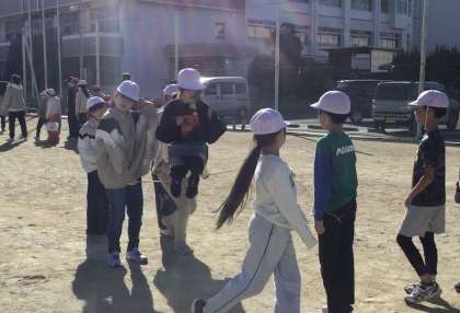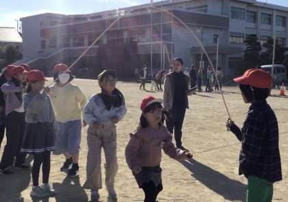 一番下の写真は、特別支援学級さんです。里奈先生、聡美先生が廻し手をしています。すごいなぁと思ったのは、先生2人の廻し方です。跳びやすいように地面スレスレを縄が通るよう、先生が縄をすごく下の所までもっていっています。