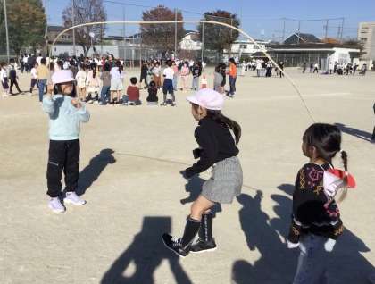 縄を廻す子は跳びやすいように大きく廻すことが1年生ですが、もうできていました。