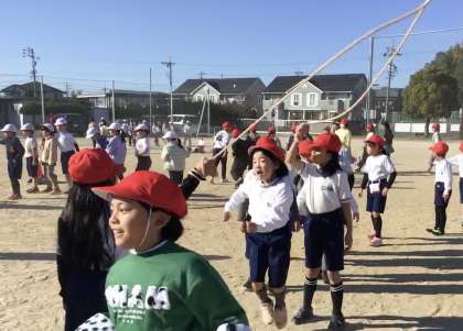 縄を廻すリズムと走るリズムがうまく噛み合うと連続して10回以上跳べることもあります。