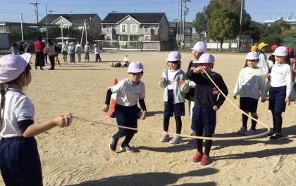 連続して入れる子が増えます。縄が地面を通った瞬間を予想して、縄に飛び込んでいきます。