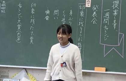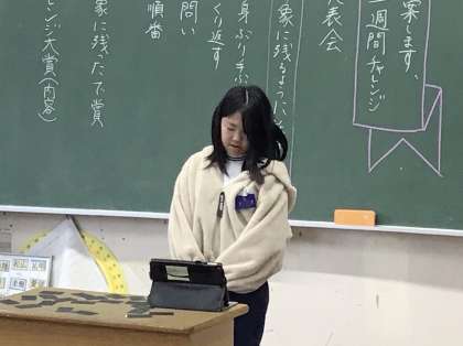 5年1組さんでは「1週間チャレンジ」と題して、順にスピーチをしていました。