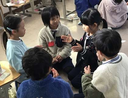1時間目、音楽室では2年1組さんが音楽の授業を行っています。
