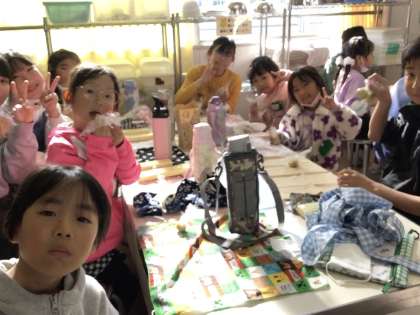 サツマイモを温めるところは先生がやってくれましたが、ボールに入れてつぶす、砂糖を入れてかき混ぜる、ラップで包むなどは自分たちでやりましたので、家でも保護者の方が少しお手伝いいただければ、自分たちで作れるのではないかと思います。