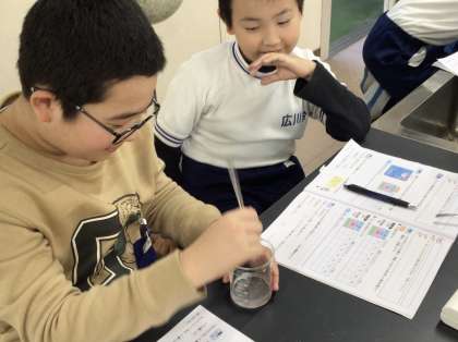 5年1組さんが理科の実験を理科室で行っていました。