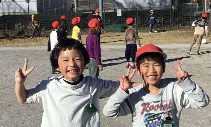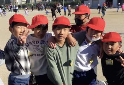 ネット沿いではサッカーをやっている3年生。それを見守る1年生。