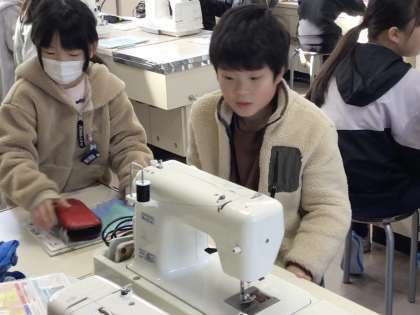 5年2組さんが家庭科の授業でミシンの使い方を勉強していました。