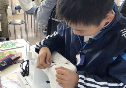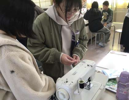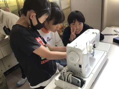 3・4時間目は5年1組さんがミシンにチャレンジです。