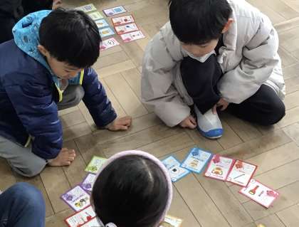 カードゲームは1時間目は1・3・5年生。2時間目は2・4・6年生が取り組みます。