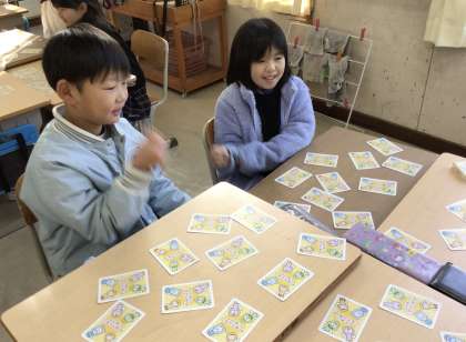 続いて3年生。机の上にカードを全て並べています。