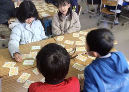 同じカードを見つけたら、書かれている内容を同じグループの子に伝えます。