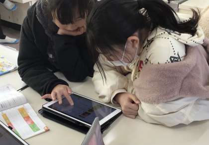 4時間目、6年2組さんが調理実習のメニューを考え中です。