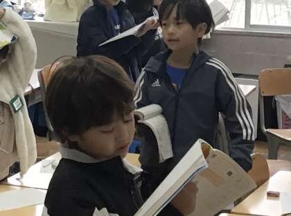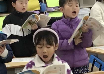 1年2組さんでは国語の授業で「おとうとねずみチロ」の音読をしていました。