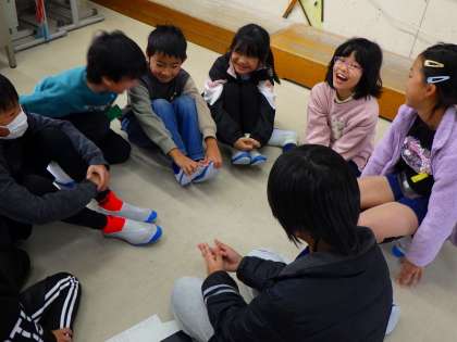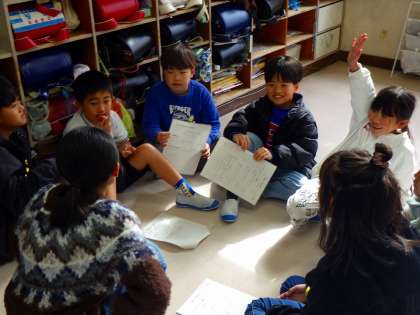 一緒に6年生の子が考えてくれた遊び「トロロっ子遊び」で、仲が深まっているので、発表を聴く様子も真剣かつ楽しく取り組める班が多いです。