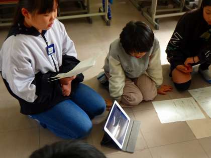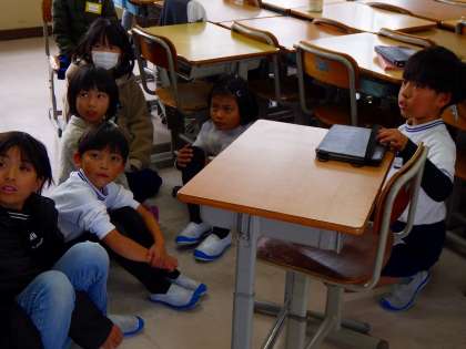 5年生の子たちは、1年生から6年生の子たちの前で発表することを目標にパワーポイントをまとめてきました。