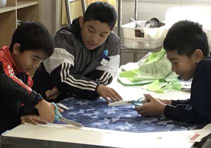 5年1組さんが家庭科の授業でエプロン作りに挑戦していました。
