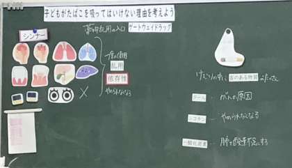 今日の授業では、「子ども」がたばこを吸う危険性について勉強をしました。(1組さんでも同じ授業をしています)