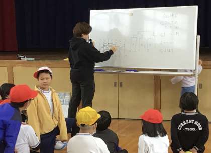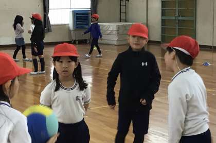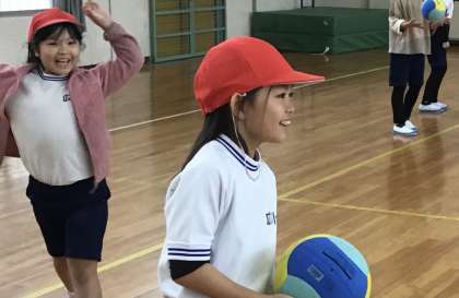 3年1組さん、体育の授業でバレーボールの試合をしていました。