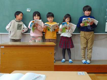 音読発表会(1年2組)2 公開日 2024/12/18 更新日 2024/12/18 各学年から 授業の後半に、再び教室に顔を出すと、発表会が始まっていました。 本番は、黒板の前にみんなで並んで発表していました。練習の成果がしっかり出ていましたよ。