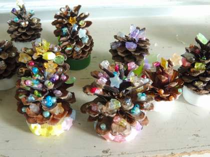 教室内はクリスマス一色。手作りの飾りや松ぼっくりツリーなど、かわいいものがたくさんありました。