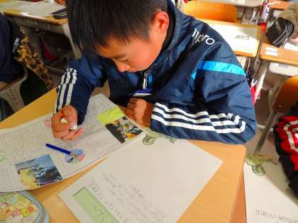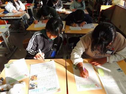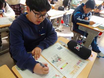 修学旅行紹介文を読もう(5年1組) 公開日 2024/12/19 更新日 2024/12/19 各学年から 6年生が「修学旅行紹介文」を作成し、5年生に届けてくれました。 読み手の興味を引くようにキャッチコピーに工夫がされ、とても楽しい紹介文になっていました。今から、修学旅行がとても楽しみになった5年生でした。 キャッチコピーの一例です。 ・「修学旅行 ハプニングあり 楽しさあり」 ・「奈良にしかいない鹿! わくわくドキドキ修学旅行!」