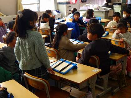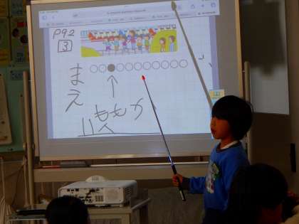 研究授業(1年1組) 公開日 2024/12/20 更新日 2024/12/20 各学年から 1年1組で算数科「ものと ひとの かず」の研究授業がありました。 子どもたちは問題をよく読み、発表ノートに図を描きながら答えを導きました。 グループで話し合った後、代表になった子がプロジェクターの前に出てきてみんなに分かりやすく発表しました。 指示棒で指しながら、堂々と伝えることができました。