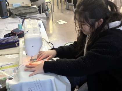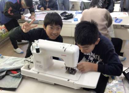 友達と協力しながら和気藹々と、ミシンを使う1組の皆さんでした。