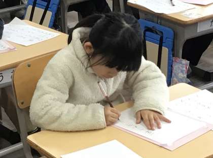 書き初め大会 1年生の様子です