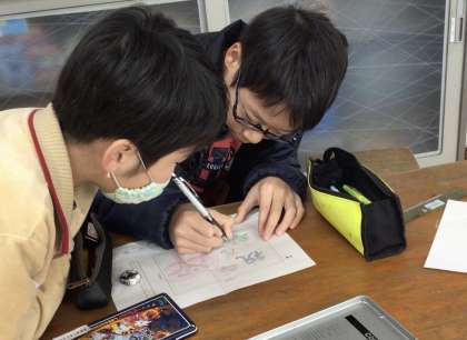 今日は彫刻刀でこれから彫っていくための下絵作りだそうです。
