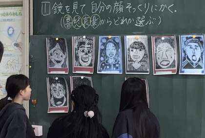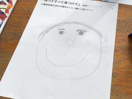 今日はいろいろな自分の表情の下絵を描いてみようということで紙が配られました。